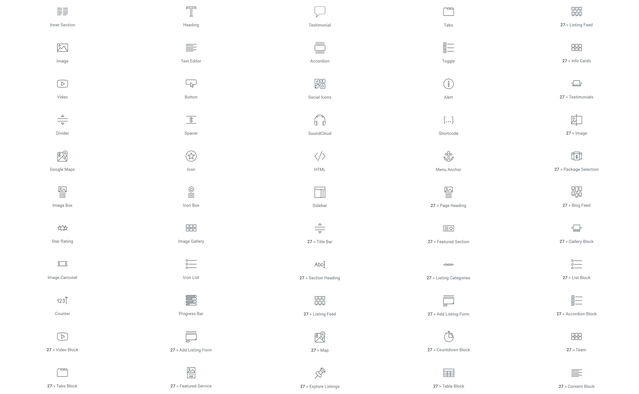 Elementor widgets 50+ Elements available to design pages out of the box. Add more using elementor plugins and addons